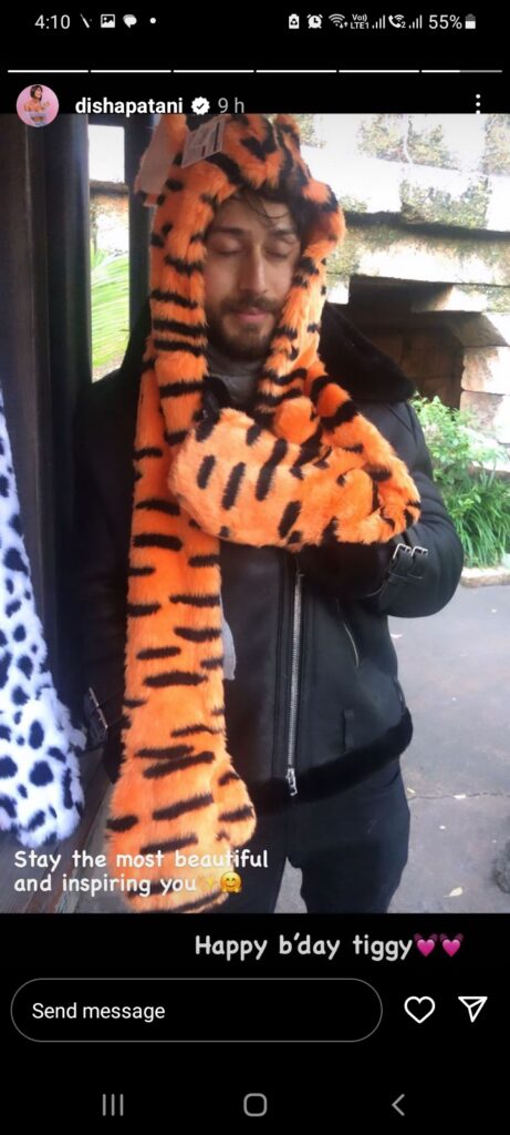 2nd March 2023 (New Delhi): As Tiger Shroff turned 33 on Thursday, his rumoured girlfriend and actor Disha Patani penned a sweet birthday wish for him. Taking to Instagram stories, Disha dropped an adorable picture of a birthday boy and captioned it, “Stay the most beautiful and inspiring you. Happy b’day tiggy.”