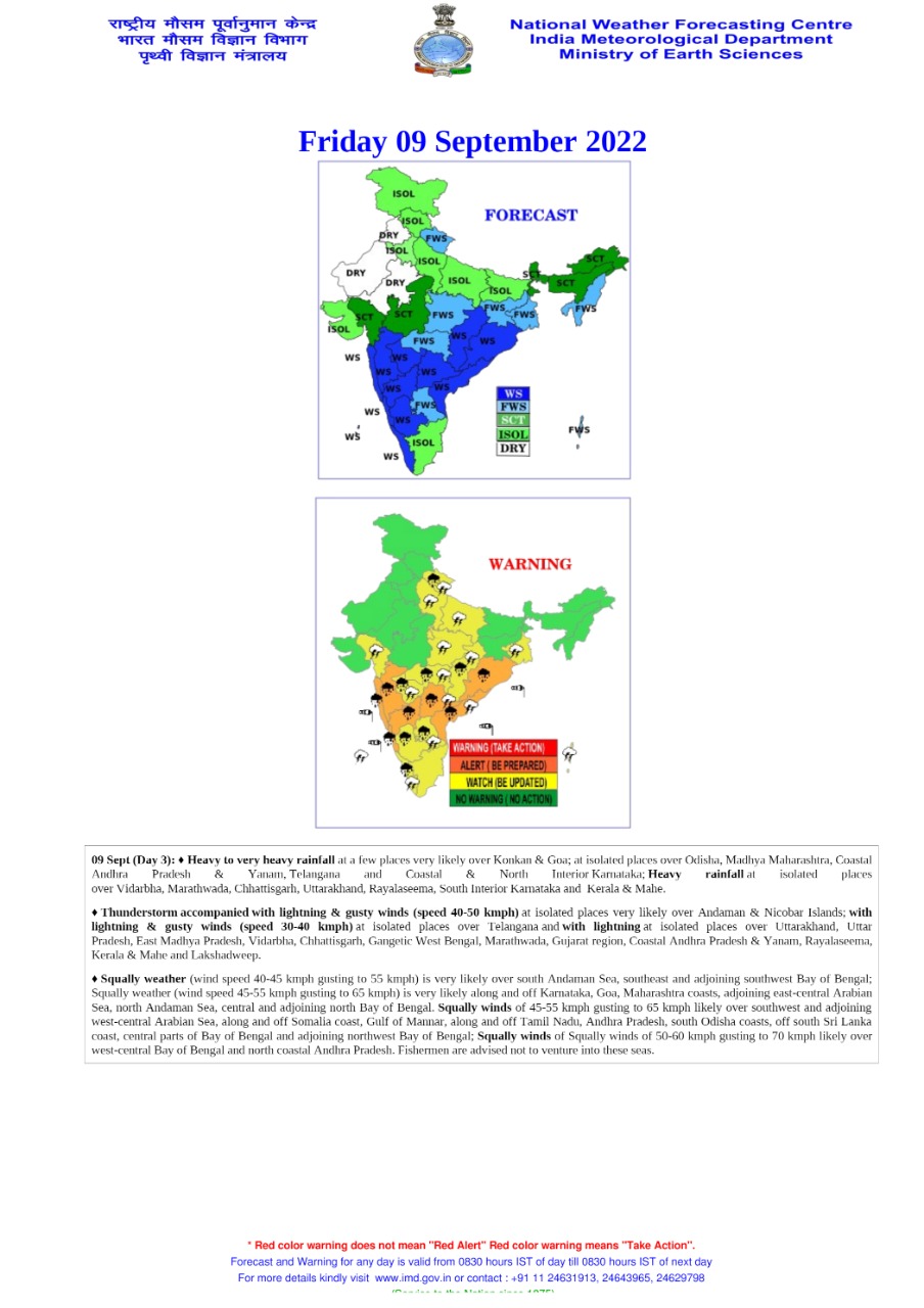8 September 2022 (New Delhi): India Meteorological Department (IMD) on Wednesday alert that a low -pressure area is likely to form over the West Central area of Bay of Bengal. This sight is likely to result in heavy winds and heavy rainfall in the next 24 hours.