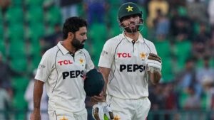 In the first inning Pakistan’s batting was brilliant. Imam-ul-Haq scored 93 and Salman Agha scored 93 giving a strong start to the Pakistan cricket team. Captain Shan Masood scored 76 runs and wicketkeeper Mohammad Rizwan scored 75. They both carried the momentum, and Pakistan scored 378 runs in the first innings.