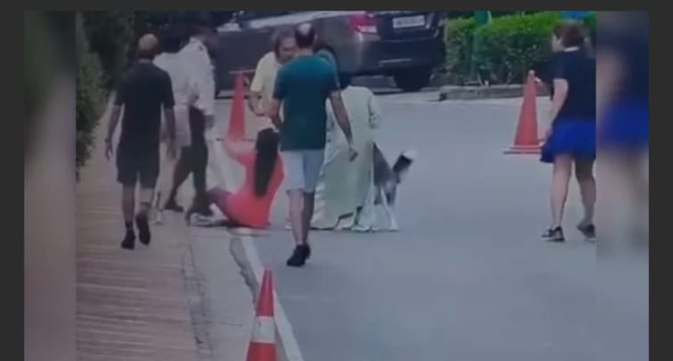 The video of the incident shows that the woman was walking with her companions on a footpath and the other woman was walking a pet Husky. The woman on the walk was busy chatting when husky leaped over her causing her to fall to the ground. The woman with the pet , pulls the leash to get it under control but the dog doesn’t let go . Others kicked the dog hoping it would free her but it didn’t let go for 15 seconds. The incident is concerning as it involves a pet dog. Reports of stray dog attacks have also drawn the Supreme Court’s attention to this menace